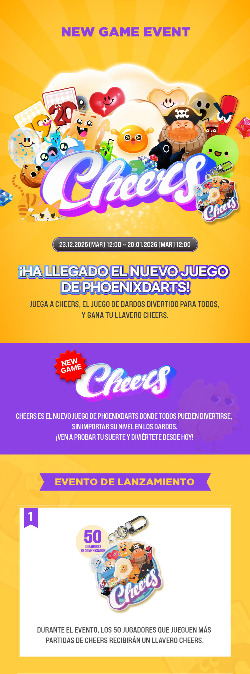 [Evento] LANZAMIENTO DEL NUEVO JUEGO Cheers 2025-12-16 ¡Actualización de Nuevo Artículo de febrero! ▲ 2026-02-03 ▼ ¡Actualización de Nuevo Artículo de diciembre! 2025-12-02 Lista