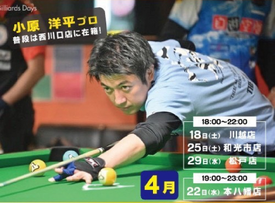 【4/22(水)ビリヤード】Link所属!小原洋平プロ インストラクターDay!
