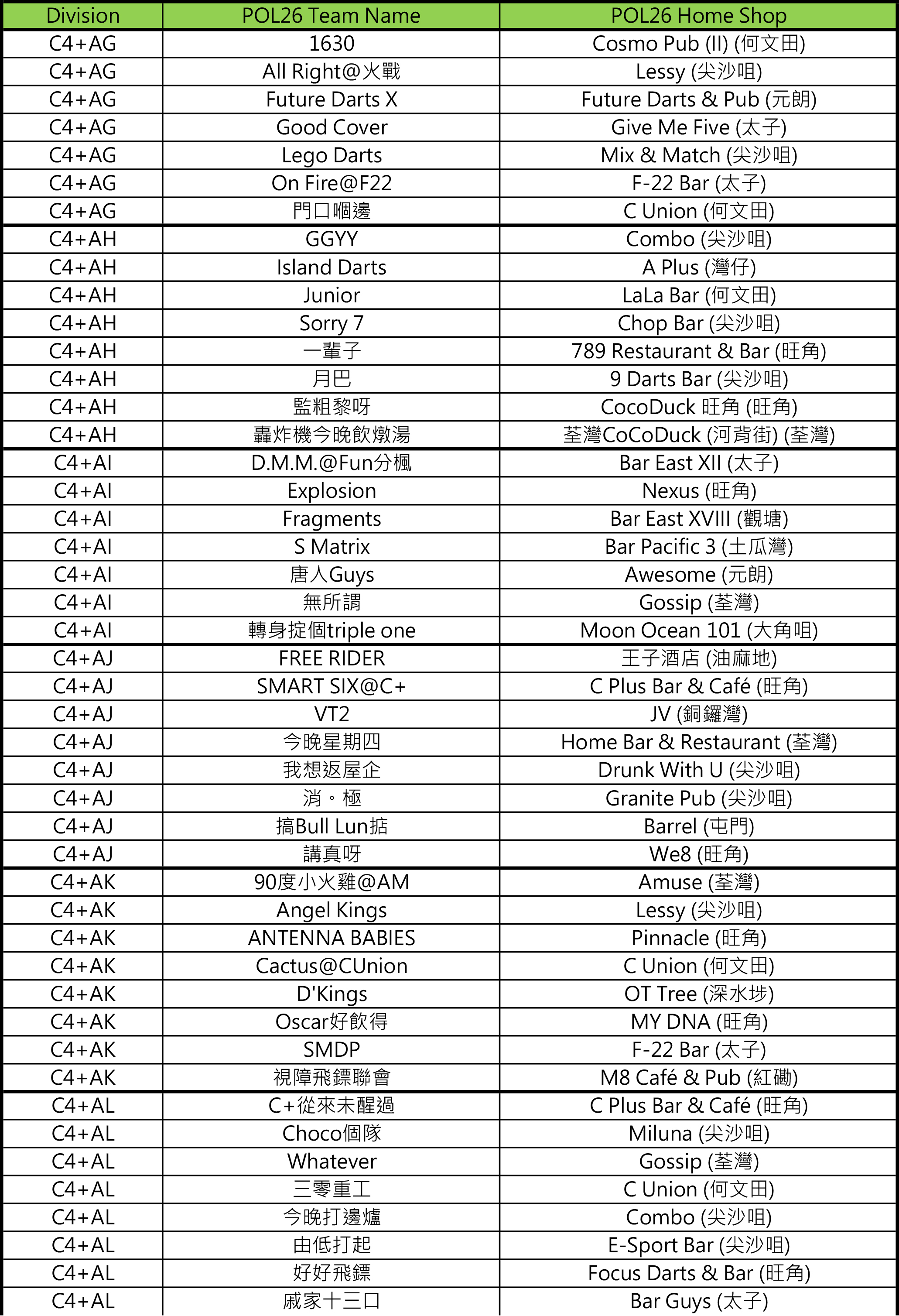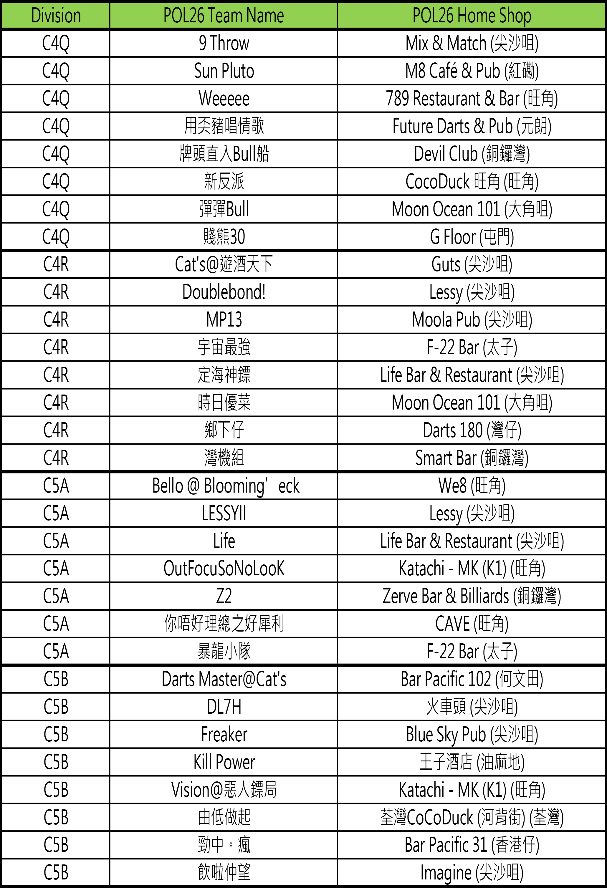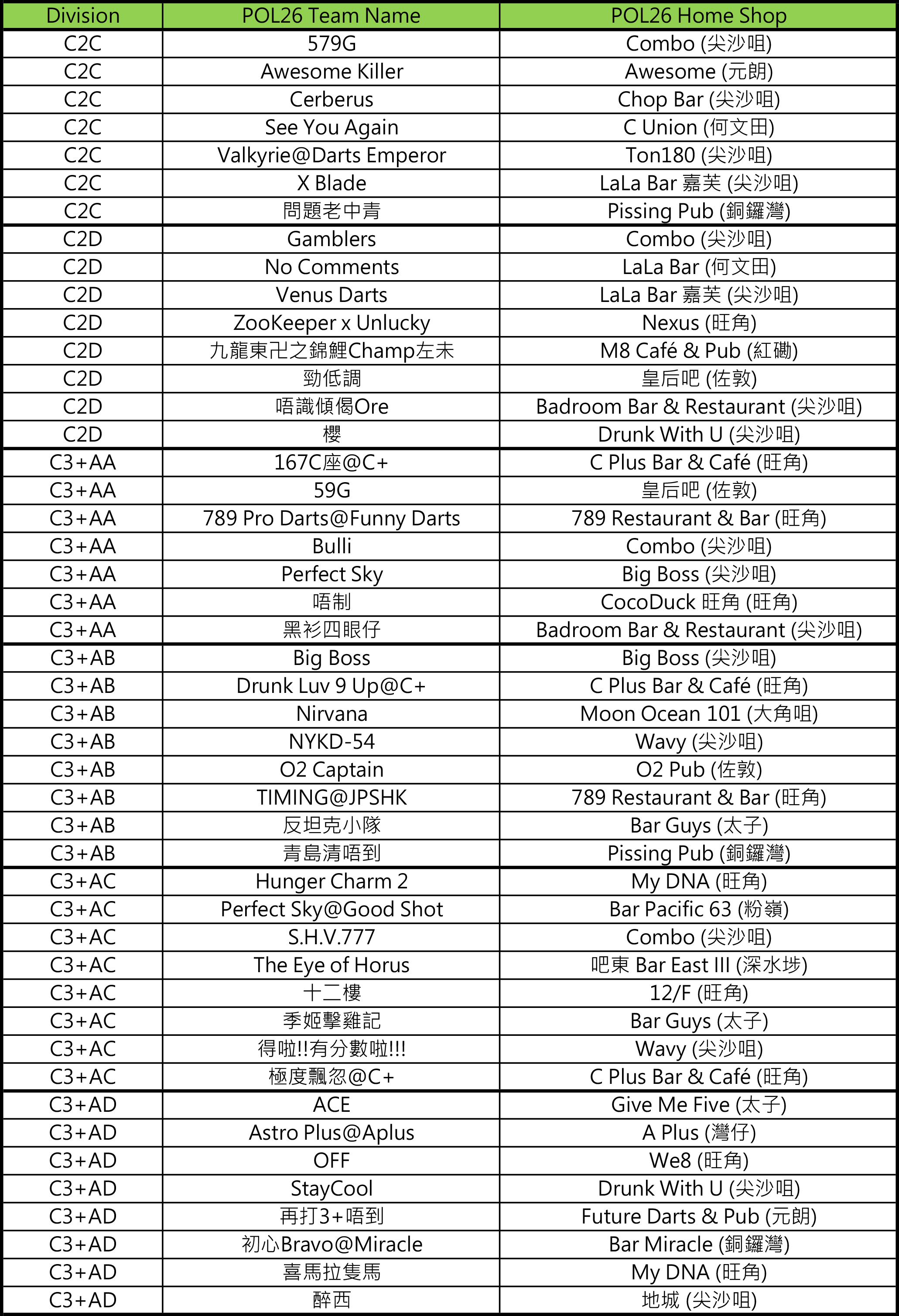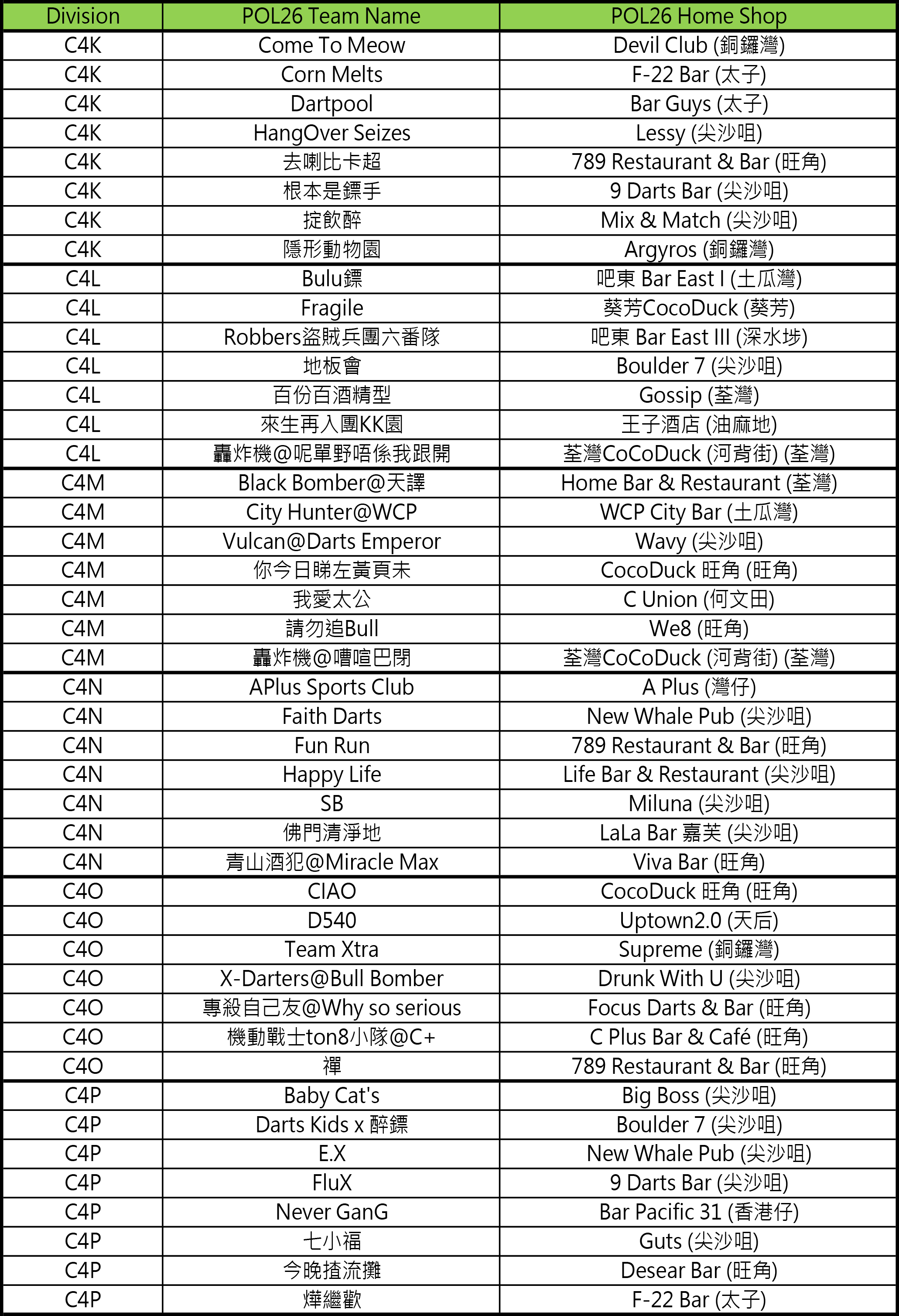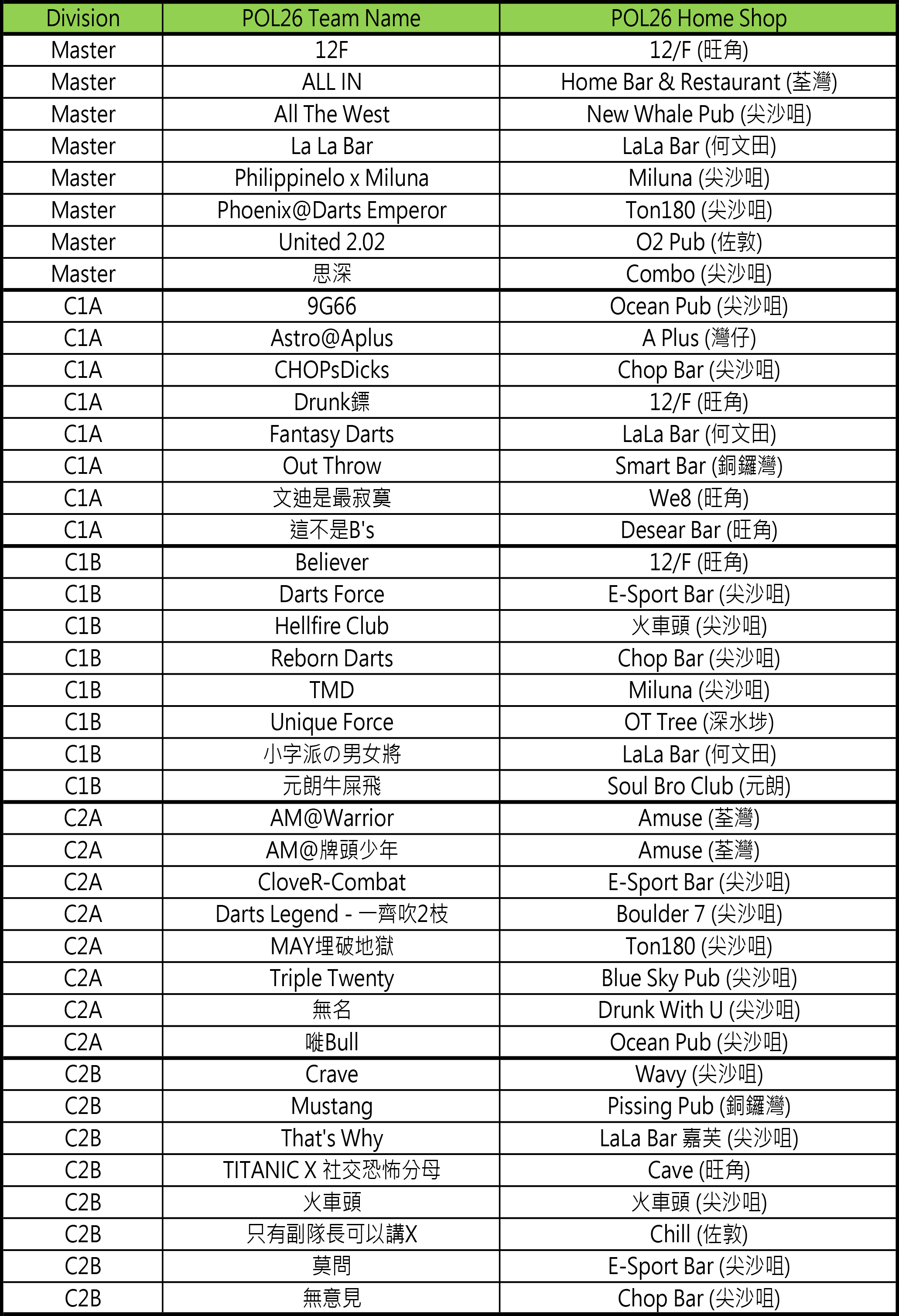 - [比賽] Carlsberg Phoenix Official League 26 隊伍分組抽籤結果及賽程公佈