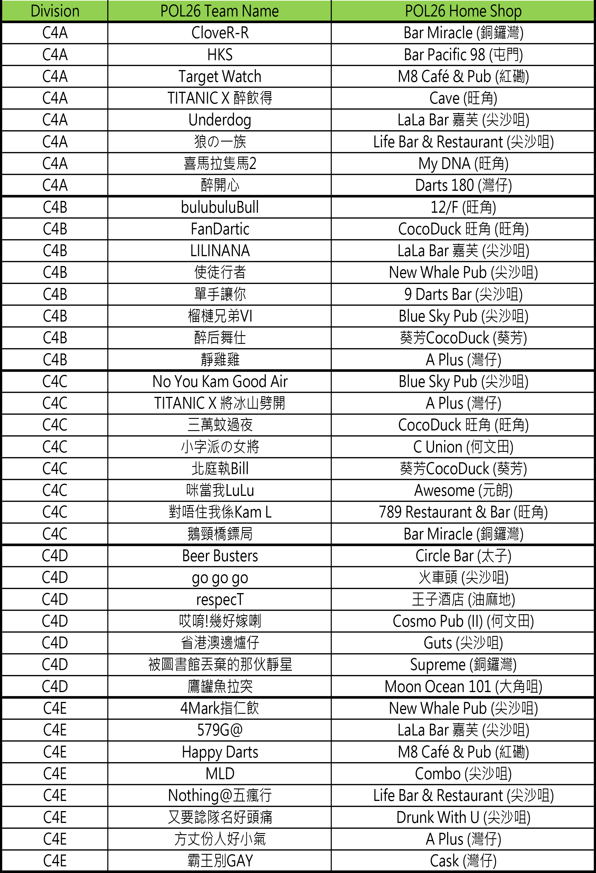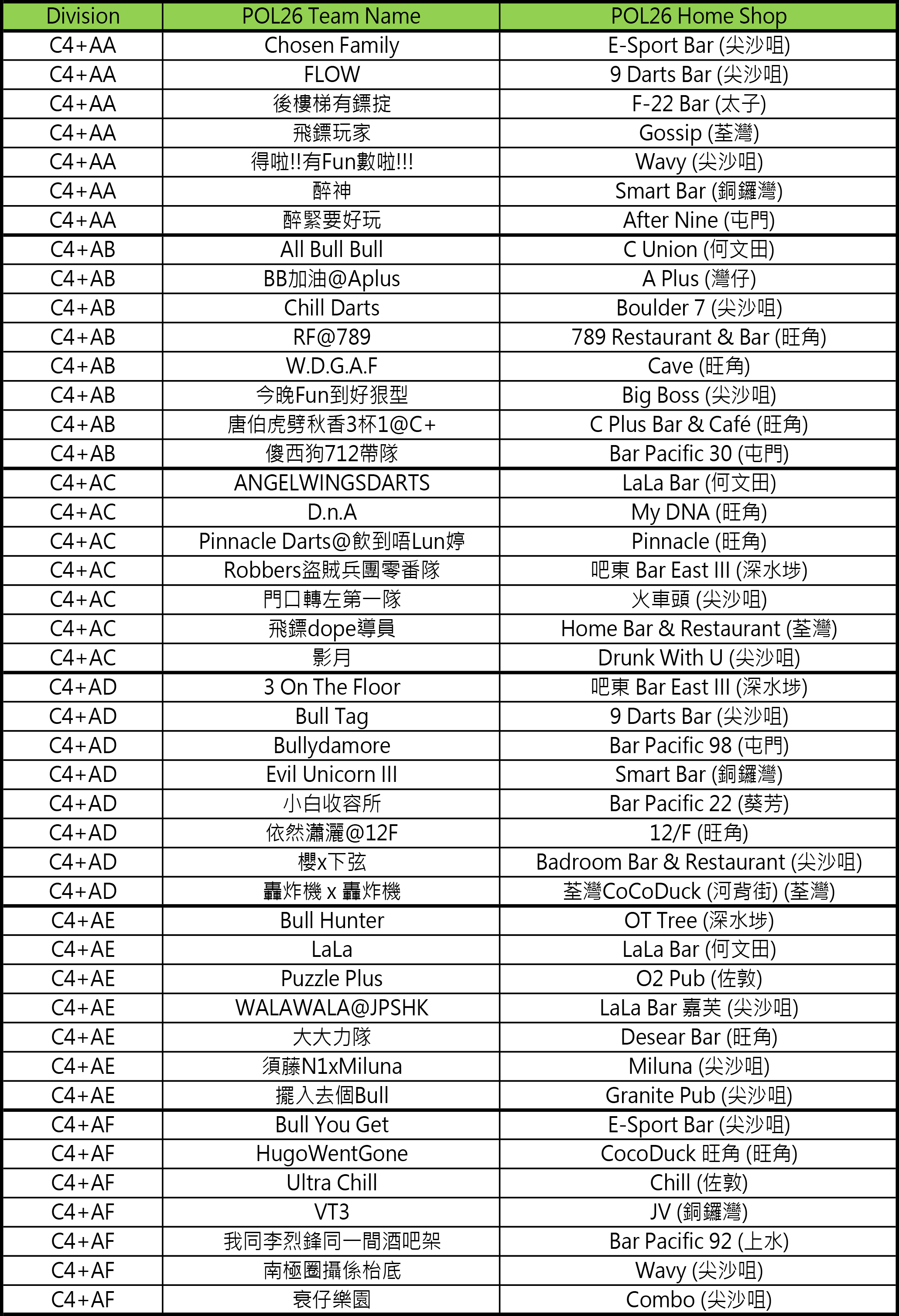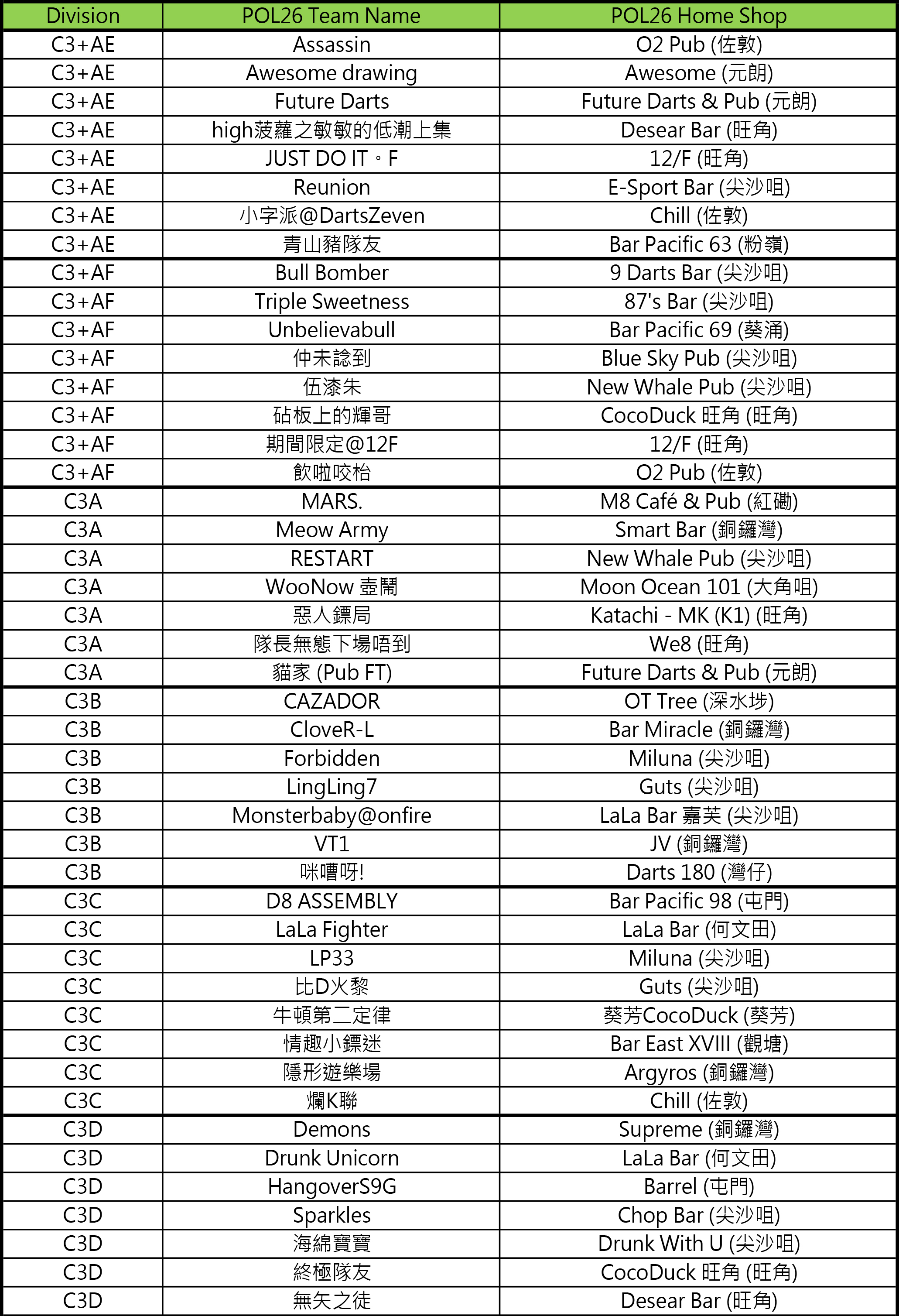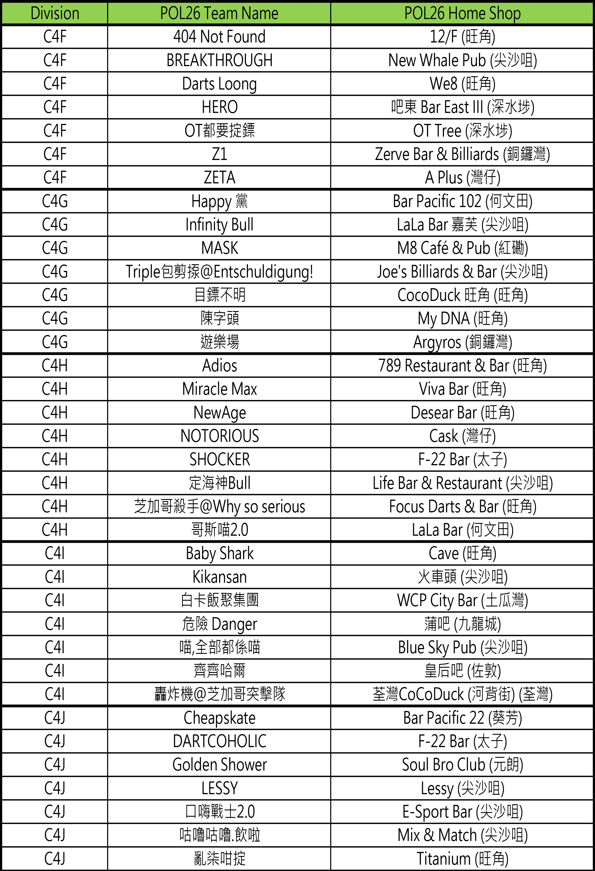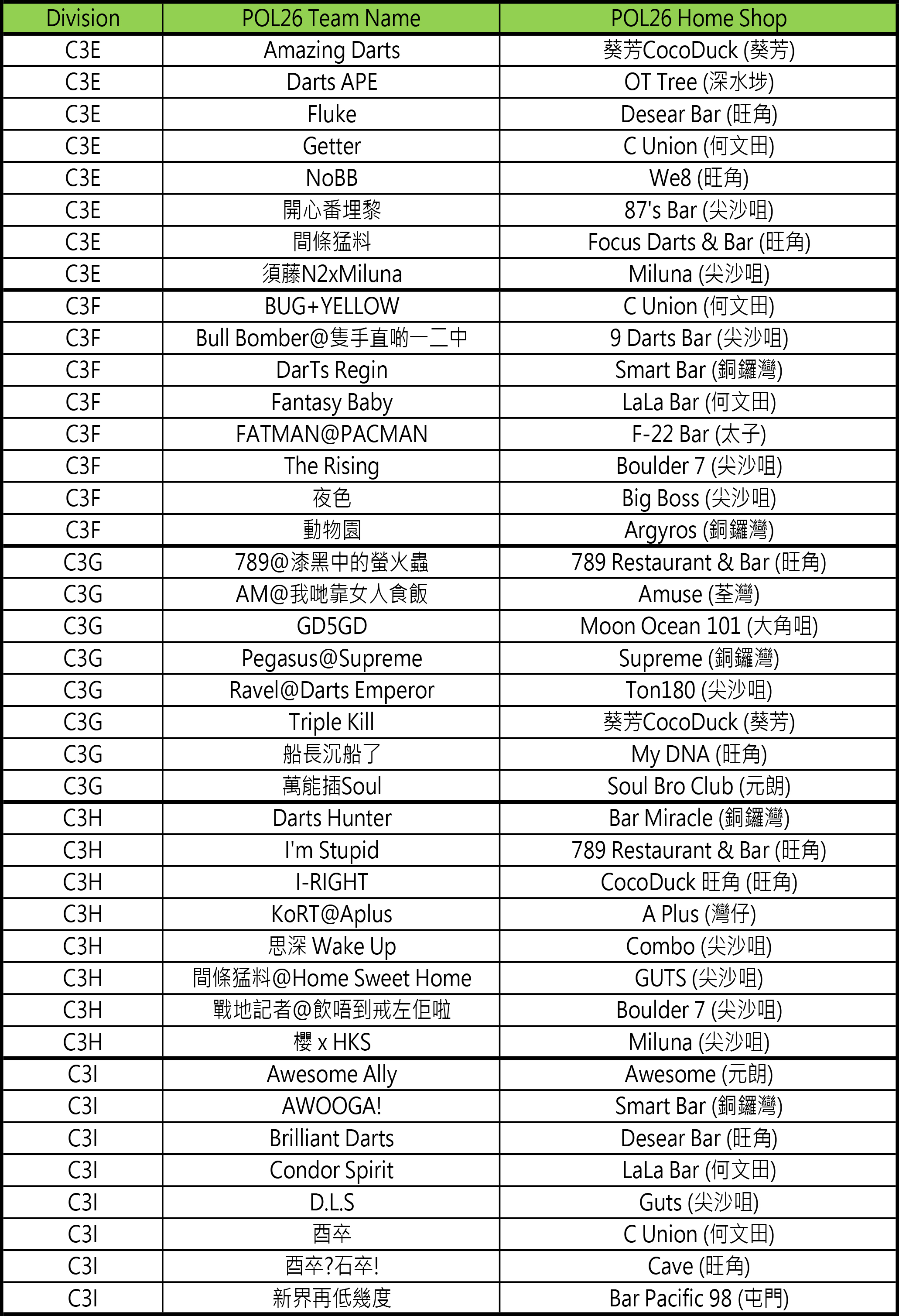 - [比賽] Carlsberg Phoenix Official League 26 隊伍分組抽籤結果及賽程公佈