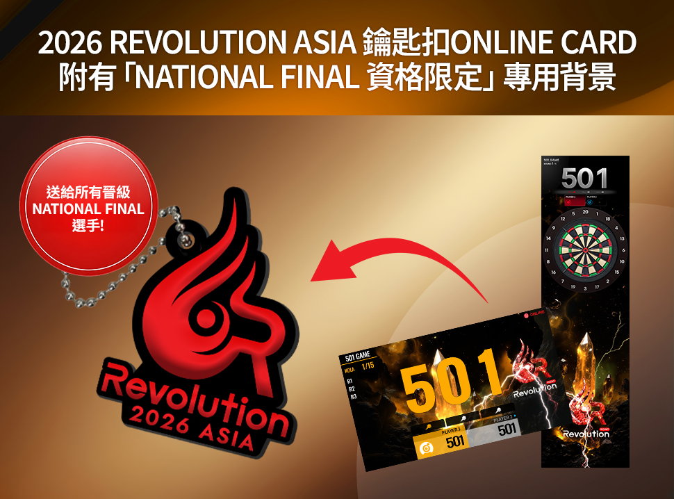 例子) 帳戶A(Card 1) - Bronze,第10名; 帳戶A(Card 2) - Bronze,第16名。 只接受一張卡 → 排名較低(第16名)的卡被剔除在外,第33名玩家晉級 - 3.Revolution ASIA的參加者必須確保完成他們的PHOENIXDARTS會員註冊。 如果註冊未完成,將沒有獲獎資格及晉級至National Finals。