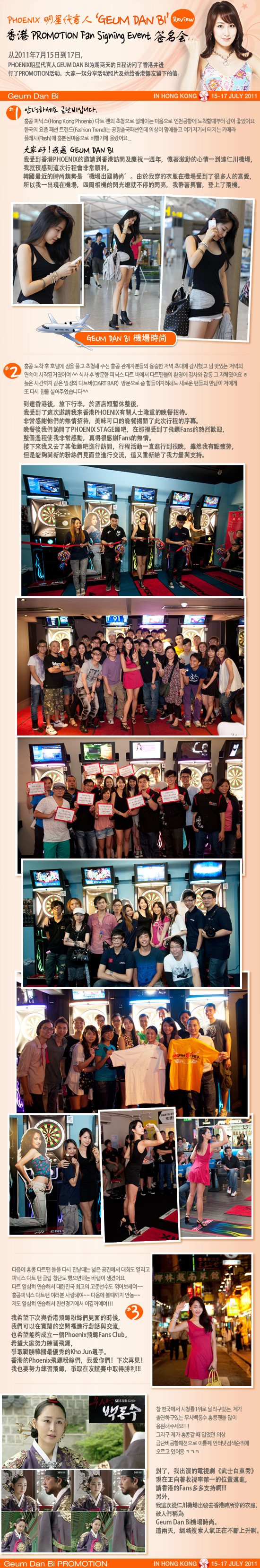 [活動] PHOENIX明星代言人 GEUM DAN BI Review 香港 PROMOTION Fan Signing Event 签名会 2011-07-26 尚有其他Geum Dan Bi 來訪香港的相片於Phoenix 的Facebook ( http://www.facebook.com/phoenixdart ) 第20屆(ADA)國際飛鏢錦標賽 澳門區Macau POL聯賽會員選拔賽 ▲ 2026-01-29 ▼ 2011藍妹啤酒 Phoenix League、香港及油尖旺新手六角賽 頒獎典禮 2011-07-26 清單