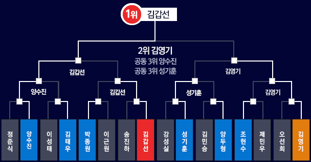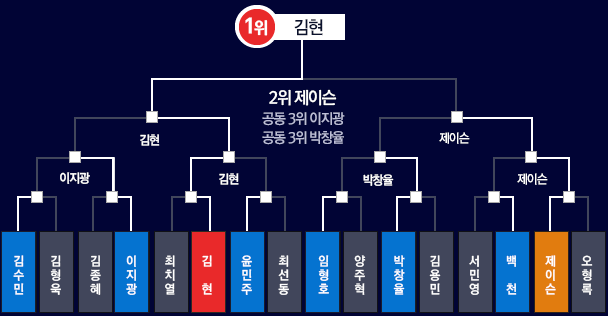 5개 디비전에서 20명의 입상자가 나왔습니다.
