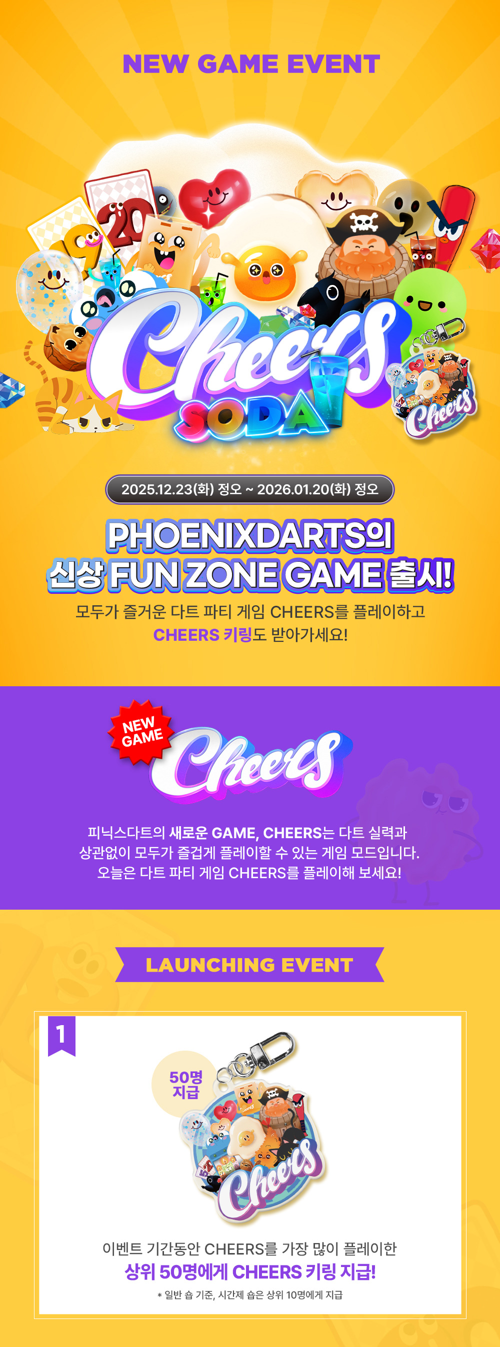 [이벤트] NEW GAME Cheers 런칭 EVENT 2025-12-16 2026 퍼펙트 코리아 1차 & 피닉스컵 1차 개요 ▲ 2026-01-27 ▼ 2025 피닉스 오피셜 리그 본선 대진표 및 본선~결승 개요 2025-12-02 목록