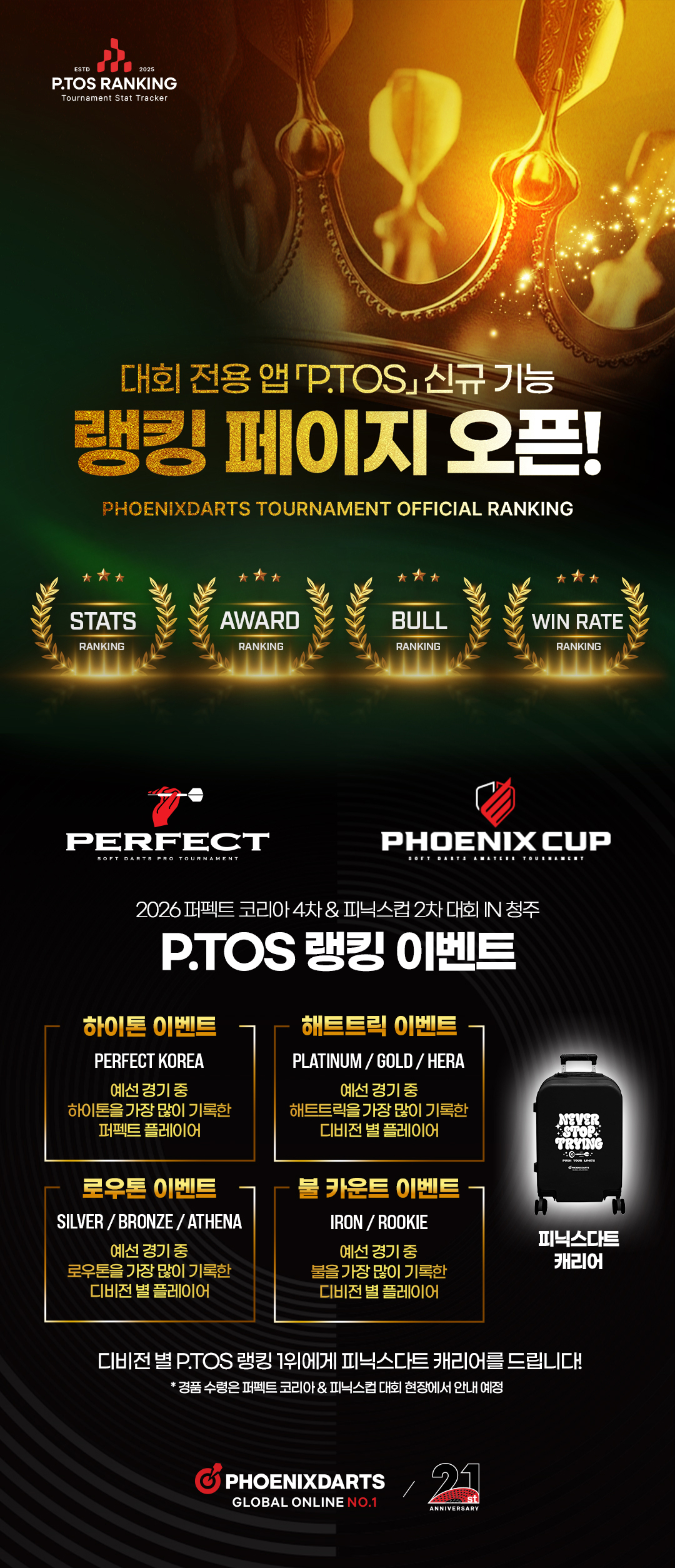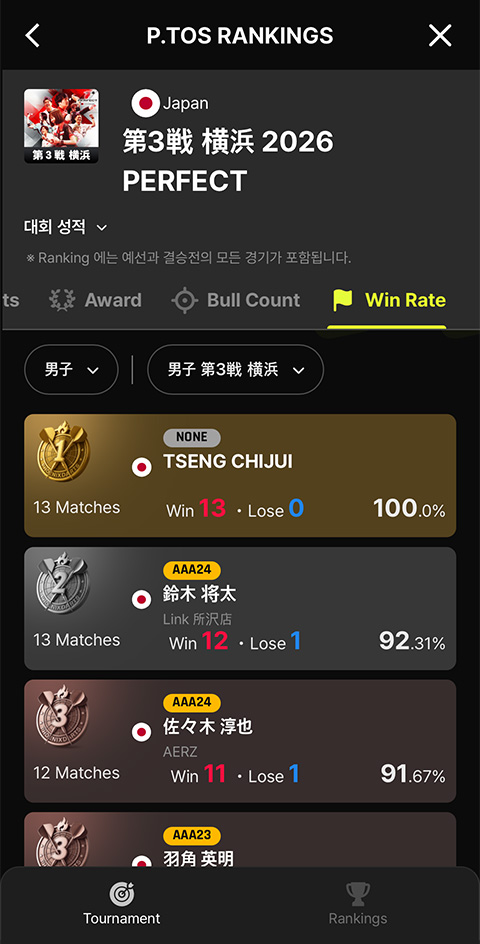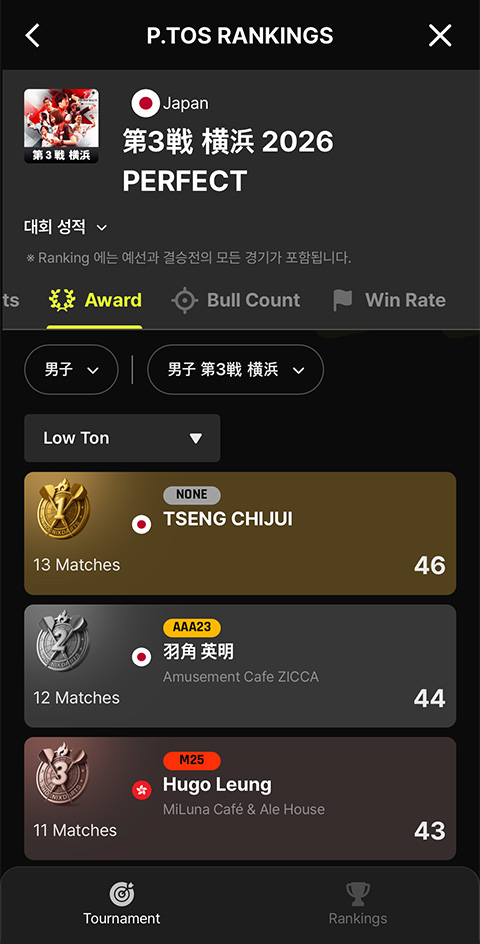 P.TOS에 대회별 다양한 데이터를 누구나 확인할 수 있는 랭킹 페이지가 추가 되었습니다.