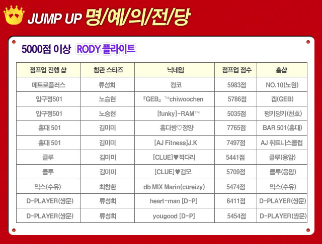 [게임] JUMP UP!! 10000점이상 7777점을 잡아라!! 2010-10-08 2월 신규 아이템 업데이트! ▲ 2026-02-03 ▼ 소프트웨어 업그레이드 안내 2010-10-01 목록