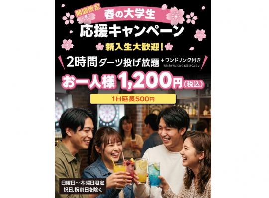 - - 春の大学生🌸 応援キャンペーン 1200円で2時間プラン - -