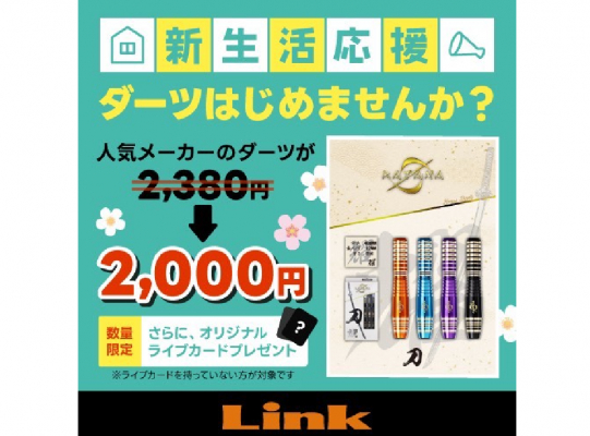 今なら人気のダーツメーカーのダーツが2,000円でGETできちゃいます!