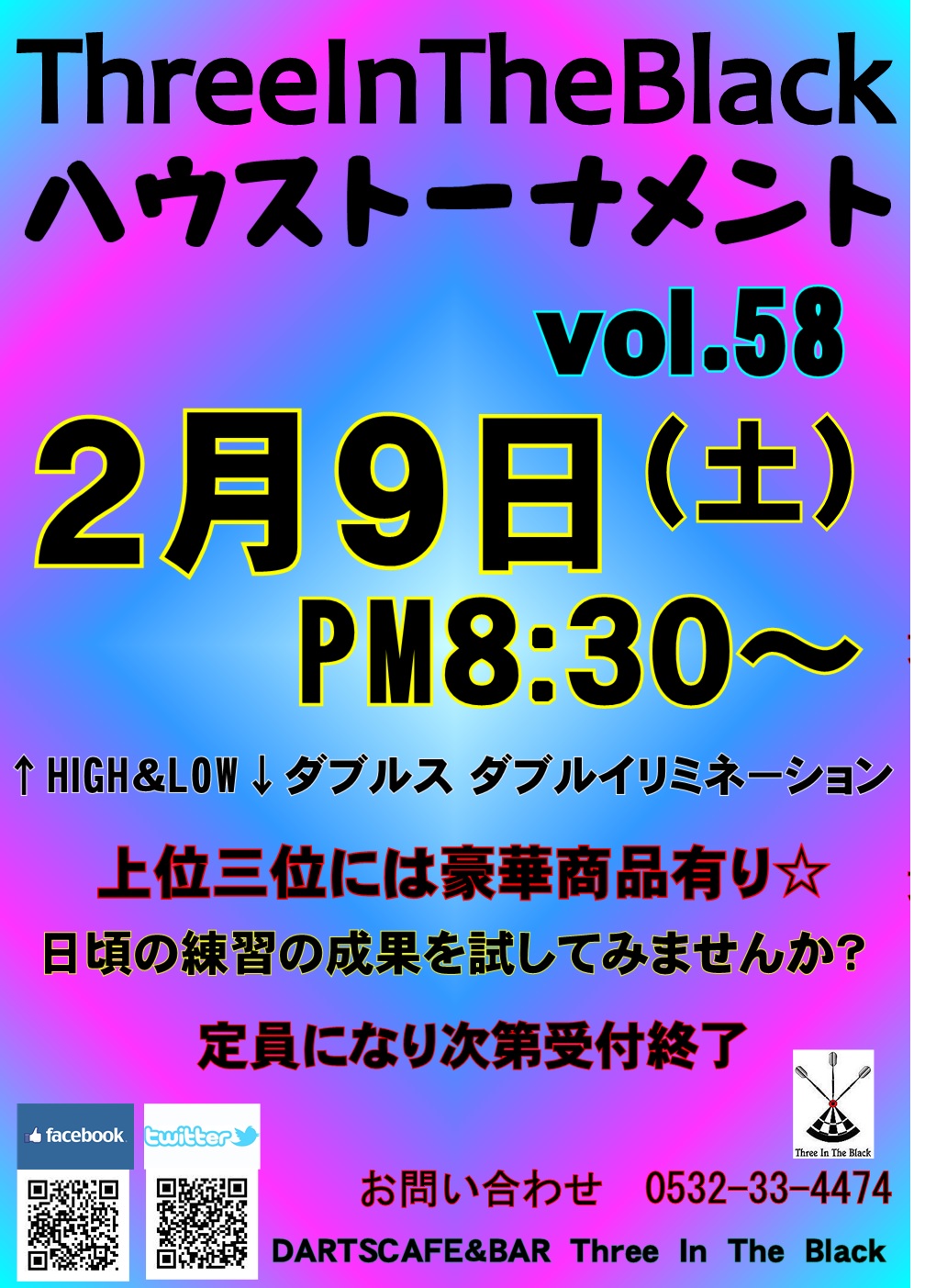 今年初のハウストーナメント『第58回ハウストーナメント』を2月9日(土)20時30分より開催いたします! 今年初の優勝者は誰になるのでしょうか(o^∇^o)? 今回はスペシャルゲストはいないですが、軽食は付きますので、夕飯も兼ねて参加してみてくださいね♪ もちろん今回も上位入賞者には豪華賞品をプレゼント☆ 参加希望者は今夜よりエントリーを受付ますのでエントリー用紙の記入をお願いいたしますm(。≧Д≦。)m