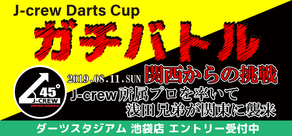 8月11日(日)に当店で開催を予定しております、『J-crew Darts Cup ガチバトル』のエントリーを当店でも行っておりますので、